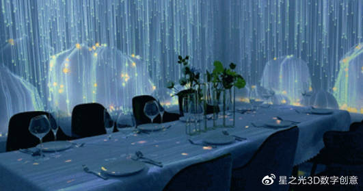全息餐廳實(shí)時(shí)交互,不僅可以改變環(huán)境,還可以讓沉浸式空間更具多樣性。